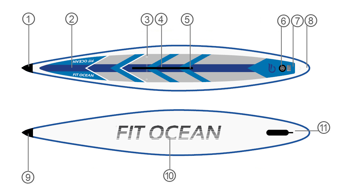- 14’x30”x6” (426x76x15cm); 8.9 kg. boardweight; 300 liter boardvolume, max. load 290 Kg.